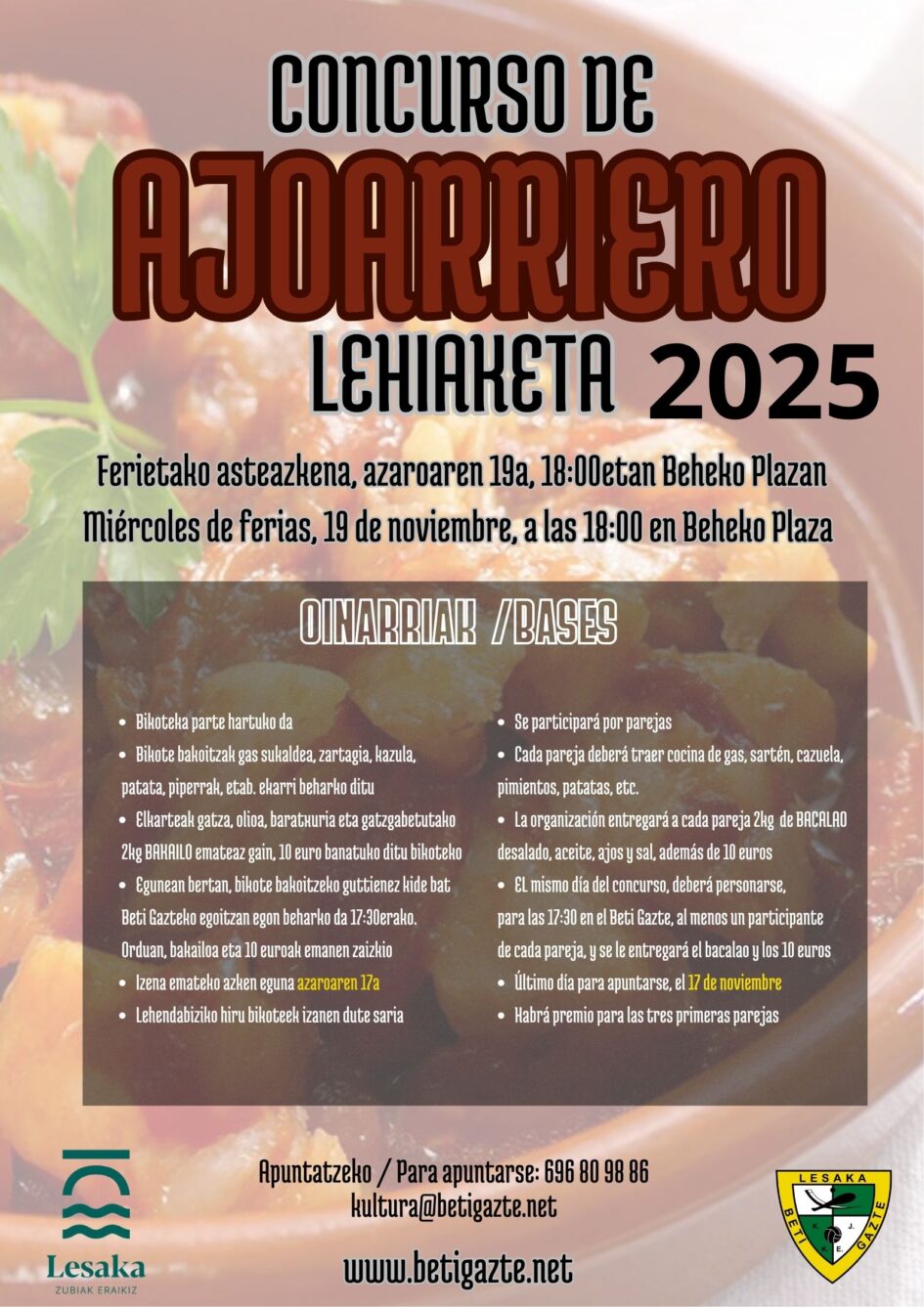 Herriko Feriak hilabete honetan ospatuko dira eta Beti Gazte elkarteak, bertze urte batez, Ajoarriero lehiaketa antolatu du Ferietako asteazkenerako, azaroaren 19rako hain zuzen. Ohi bezala, Beheko Plazan ospatuko da, 18:00etatik aitzinera.