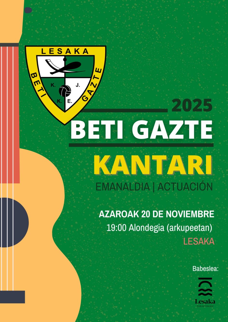 2025eko Feriak ospatuko dira Lesakan asteazken eta ortzegunean, azaroaren 19eta 20an, eta urtero bezala, ortzegunarekin Beti Gazte Kantari taldeak bere emanaldia eskainiko du Alondegian, 19:00etan.
